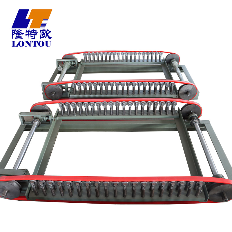 संरचनात्मक रूप से, मशीन में स्टैक्ड, समानांतर प्रसंस्करण ट्रैक (एक मजबूत धातु फ्रेम द्वारा समर्थित) और लाल-निर्देशित बेल्ट के साथ विशेष रोलर असेंबली (तनाव तंत्र के साथ जोड़ी गई) की पंक्तियां होती हैं। प्रत्येक रोलर इकाई अलग-अलग सामग्री की मोटाई (उदाहरण के लिए, पतली विनाइल बनाम मोटी नाइट्राइल) को समायोजित करने के लिए समायोज्य तनाव सेटिंग्स के साथ, दस्ताने की कलाई के किनारे को एक चिकनी, लुढ़का हुआ कफ में आकार देने के लिए नियंत्रित दबाव लागू करती है। समानांतर ट्रैक डिज़ाइन कई दस्ताने बैचों के समवर्ती प्रसंस्करण को सक्षम बनाता है, जबकि लाल बेल्ट बिना किसी क्षति के कफिंग चरण के माध्यम से दस्ताने का मार्गदर्शन करते हैं। मॉड्यूलर लेआउट रखरखाव को सरल बनाता है, और टिकाऊ धातु घटक निरंतर संचालन से पहनने का प्रतिरोध करते हैं।